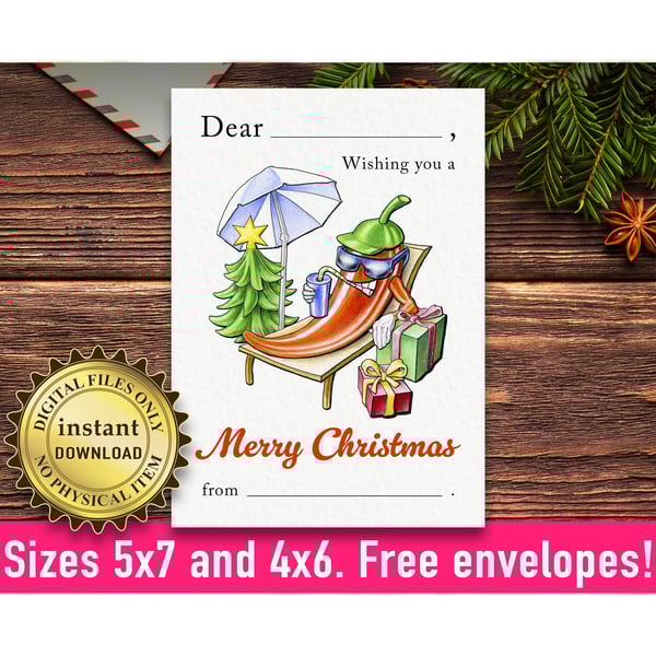 Downloadable 5x7 Funny Merry Christmas Card, Printable 4x6 Fill-in-the-Blank Xmas Postcard, Print on US Letter and A4, Bonus Free Envelopes