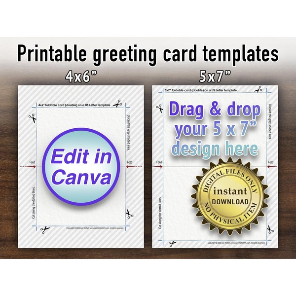 Canva editable 4x6" printing guide. Downloadable 4x6 card template. Printable 5x7 greetingcard layout. Blank postcard cardstock. 5x7” card making.