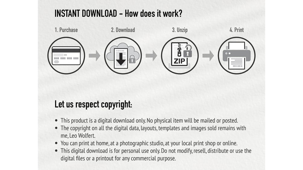 β« Alternatively, transfer your digital download to a USB stick. Then, kindly take it to your local print shop for a professional printout of your purchase.