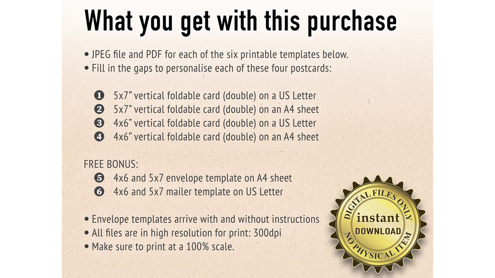 ♬ You do not need to wait for shipping. Instead, you can print your instantly downloadable carding art at home or online.
